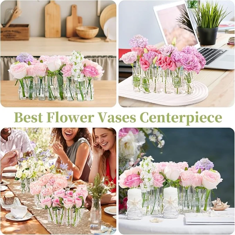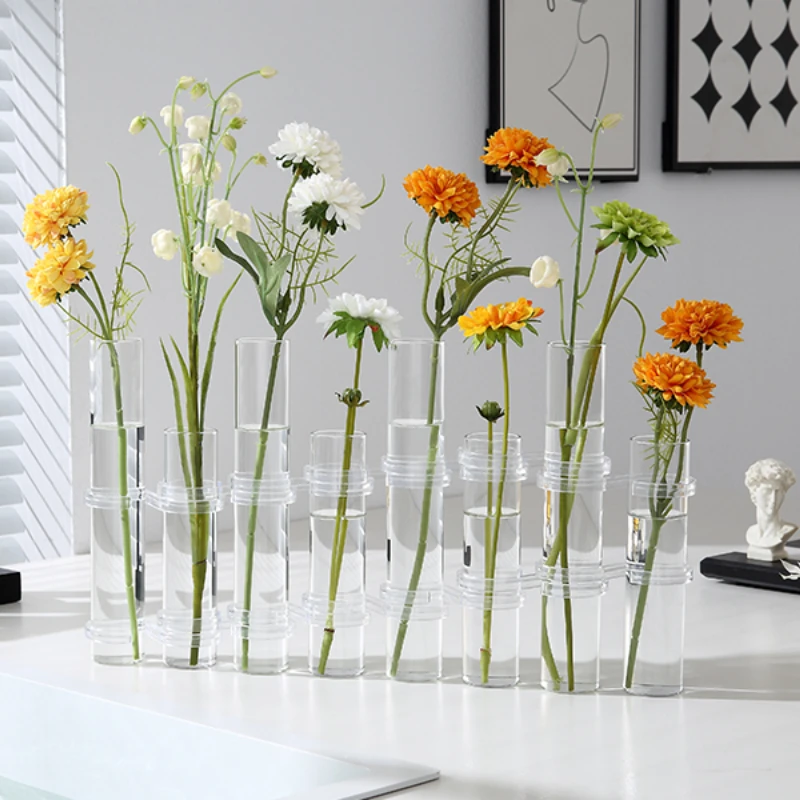 Test Tube Vase Transparent Glass Hinged Vase Hydroponics Combination Flower Appliance Living Room Office Home Decoration