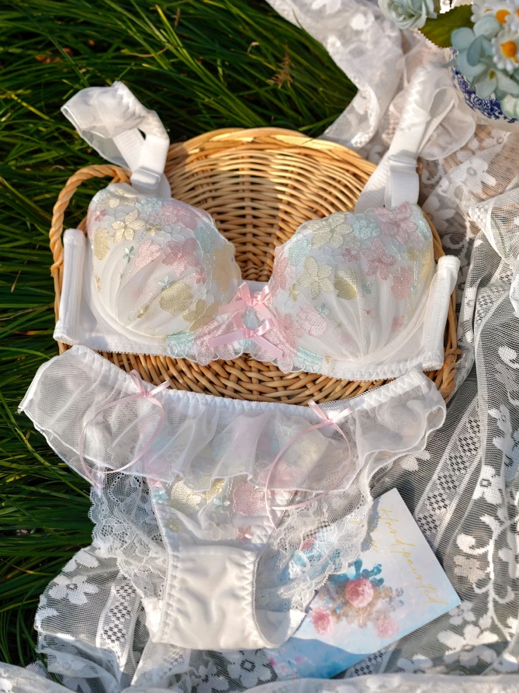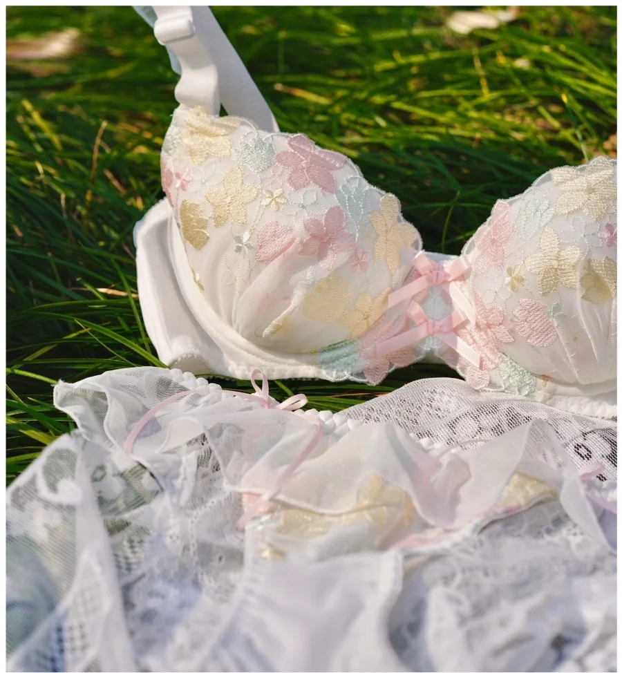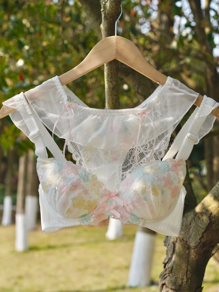Thin cup floral embroidery large bra underwear women push up lingerie large breasts gathered large size bra set