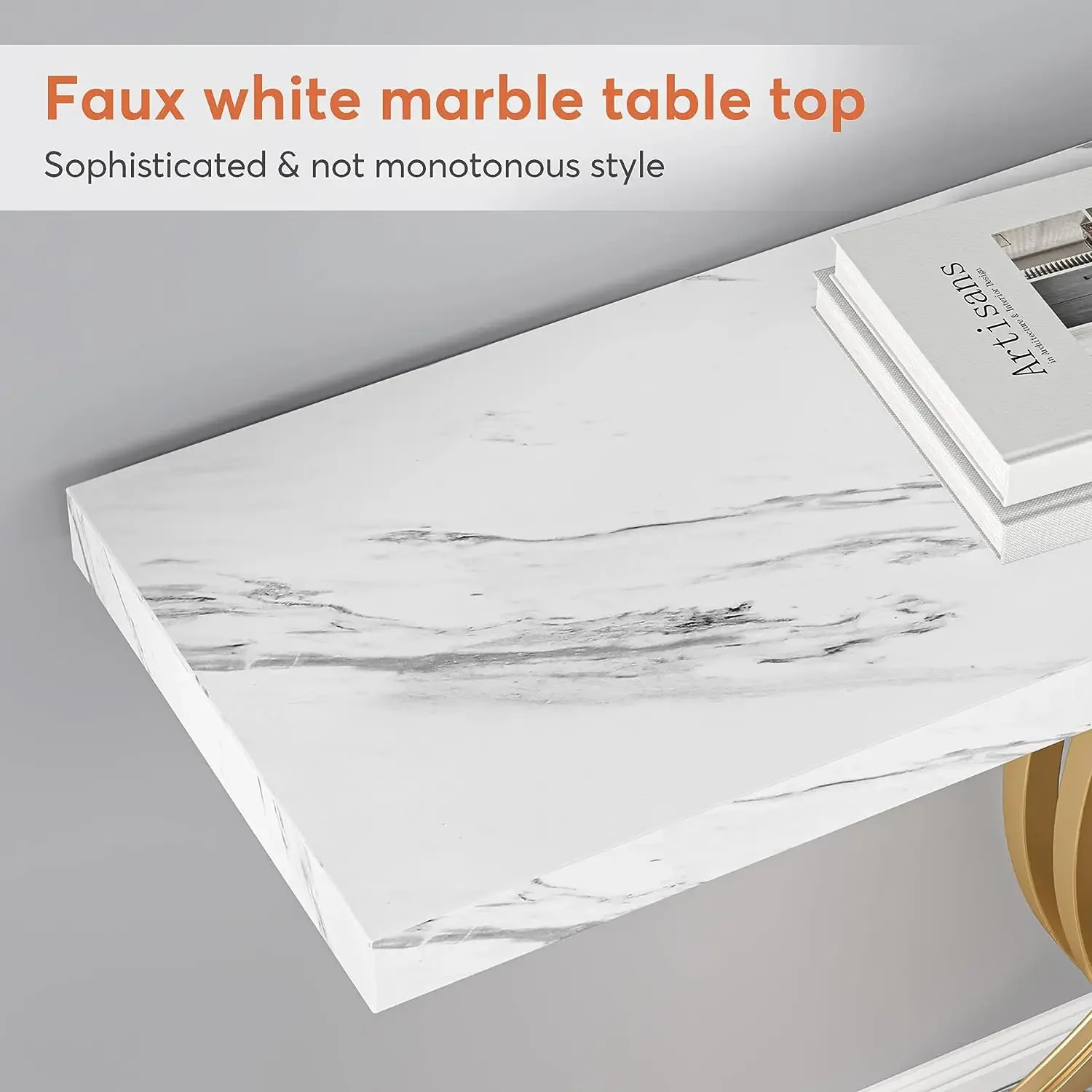 Tribesigns Gold Entryway Table, Modern 39-Inch Console Faux Marble Narrow Wood Sofa with Geometric Metal Legs