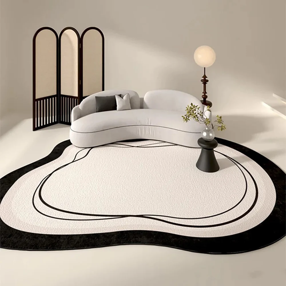 VIKAMA Minimalist Line Design Faux Wool Rug – Ultra-Thin, Stain-Resistant, Non-Slip Carpet for Bedside & Living Room, Soft Mat