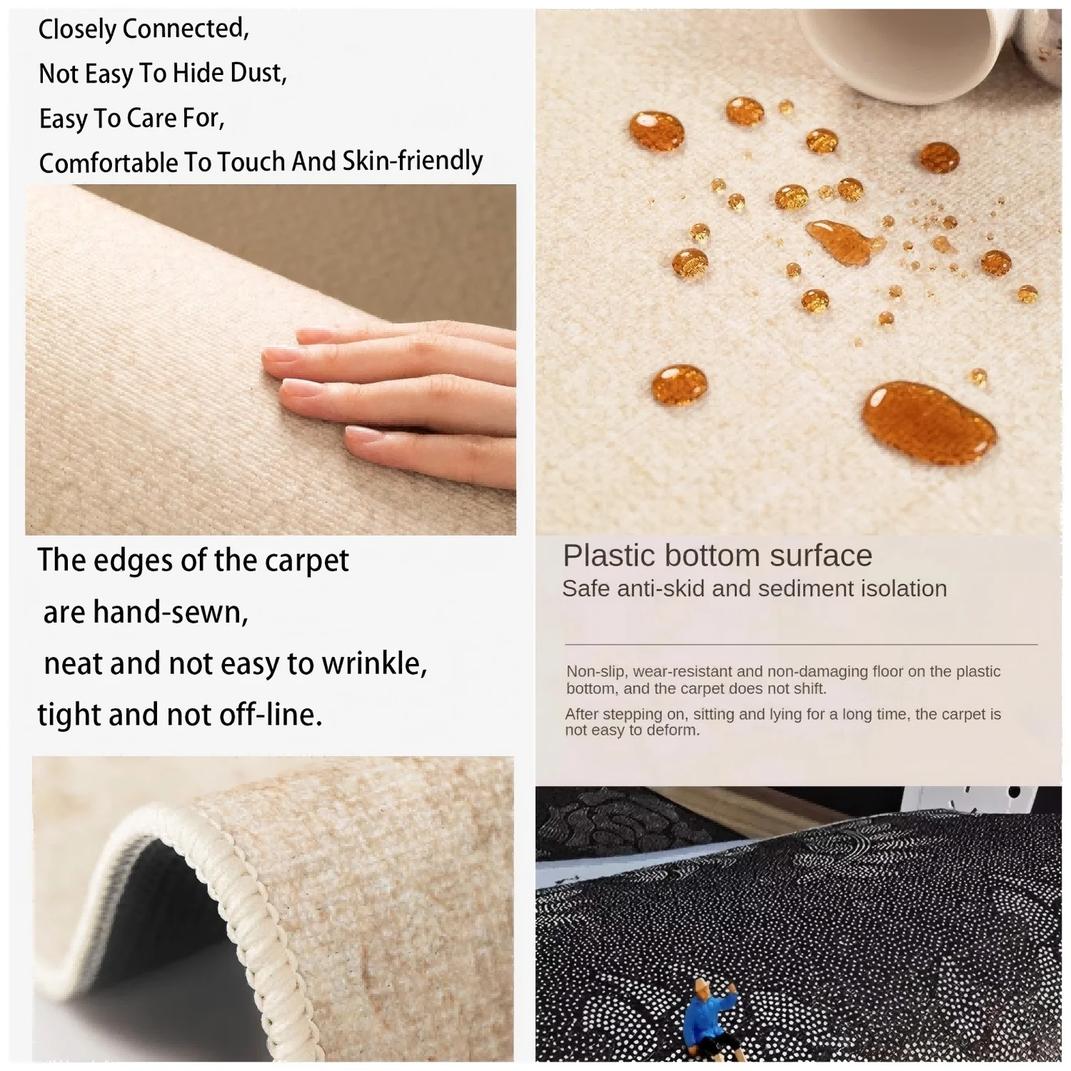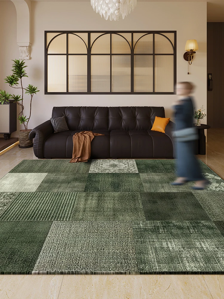 VIKAMA Summer American Retro Simple Plaid Carpet Living Room Sofa Coffee Table Foot Cushion Bedroom Bedside Rug Stain Resistance