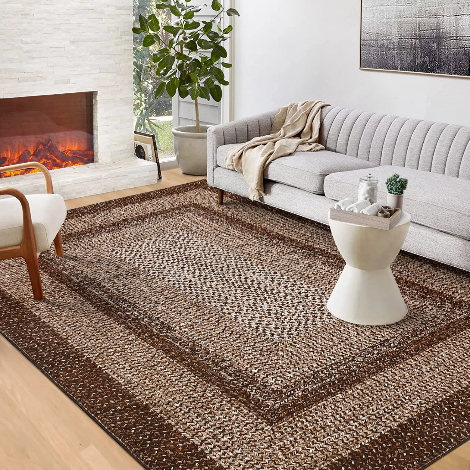Washable Area Rugs Large Rugs for Living Room Modern Braided Print Non Slip Rug Indoor Floor Cover Accent Carpet for Bedroom