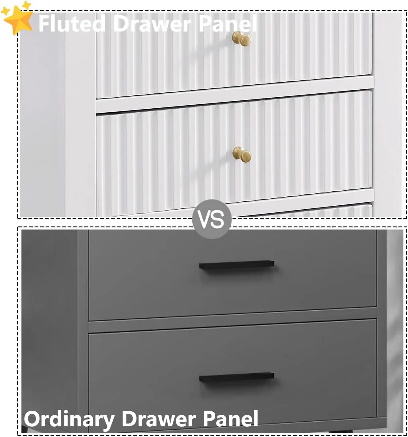 White Fluted Nightstand with with Charging Station and USB Ports, 24″ H Bed Side Table Bedroom, 3 Drawers Side Table, Wavy Bedsi