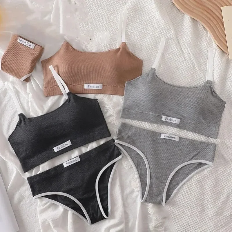 Women Cotton Seamless Bras Set Low Waist Panties Wire Free Tube Top Bra Lingerie Set Female Comfort Sports Underwear Set