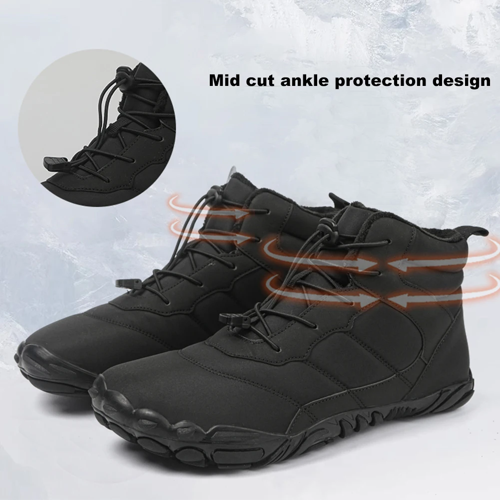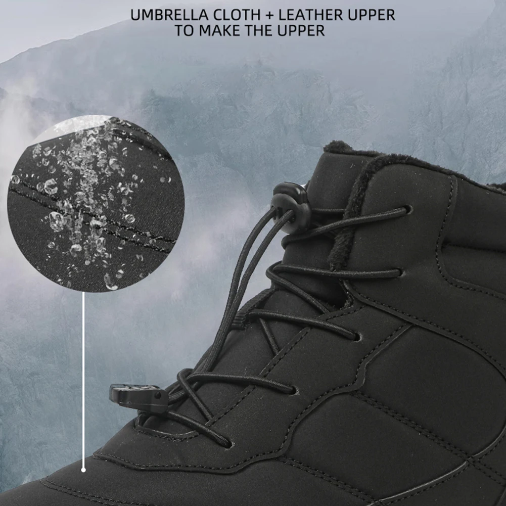 Women Men Plush Hiking Boots Lightweight Winter Fur Lined Snow Boot Non-Slip Outdoor Shoes Splash-Proof for Outdoor Activities
