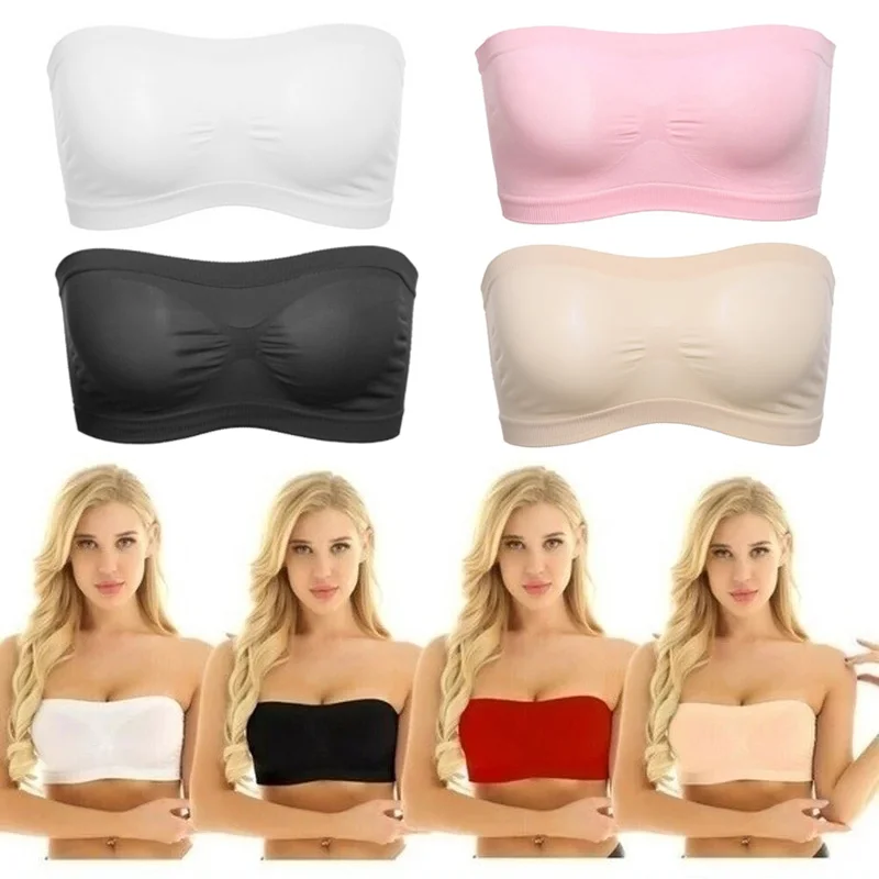 Women Seamless Invisible Bra Tube Top Underwear Lady Crop Top Lingerie Wrapped Chest Breathable Strapless Mesh Tube Top