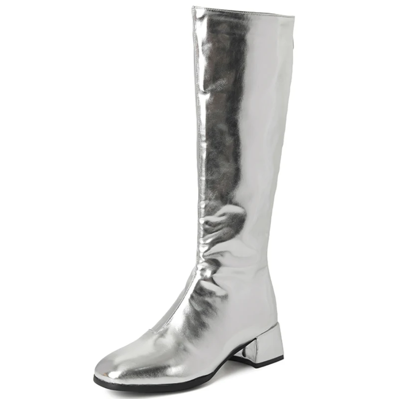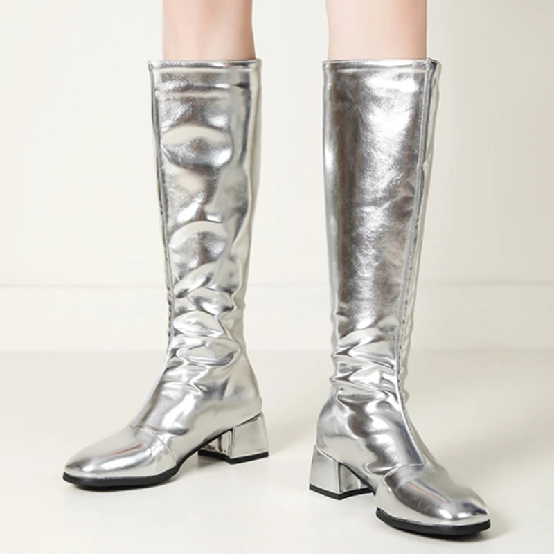 Women’s Knee High Boots Winter Shoes 2024 Gold Silver Low Heeled Long Boot Ladies Party Footwear Shoes Large Size 45 Waterproof