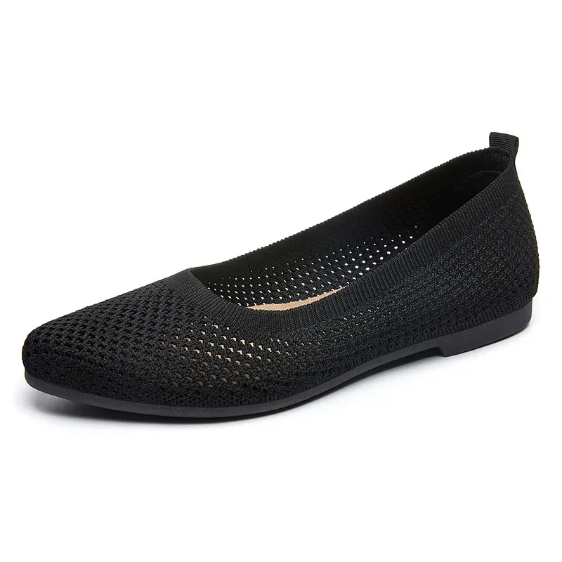 Women’s Openwork Knit Shoes 2025 Spring Summer New Soft-Soled Flat Pointed Casual Comfortable Lightweight Loafers for Women