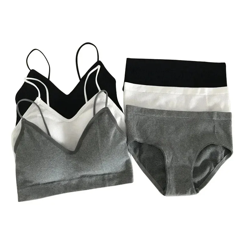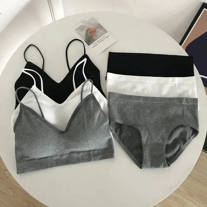 Women’s Sports Bra Set Underwear Bra Korean Style Push Up No Steel Ring Bra Tube Top High Elastic Panty Set
