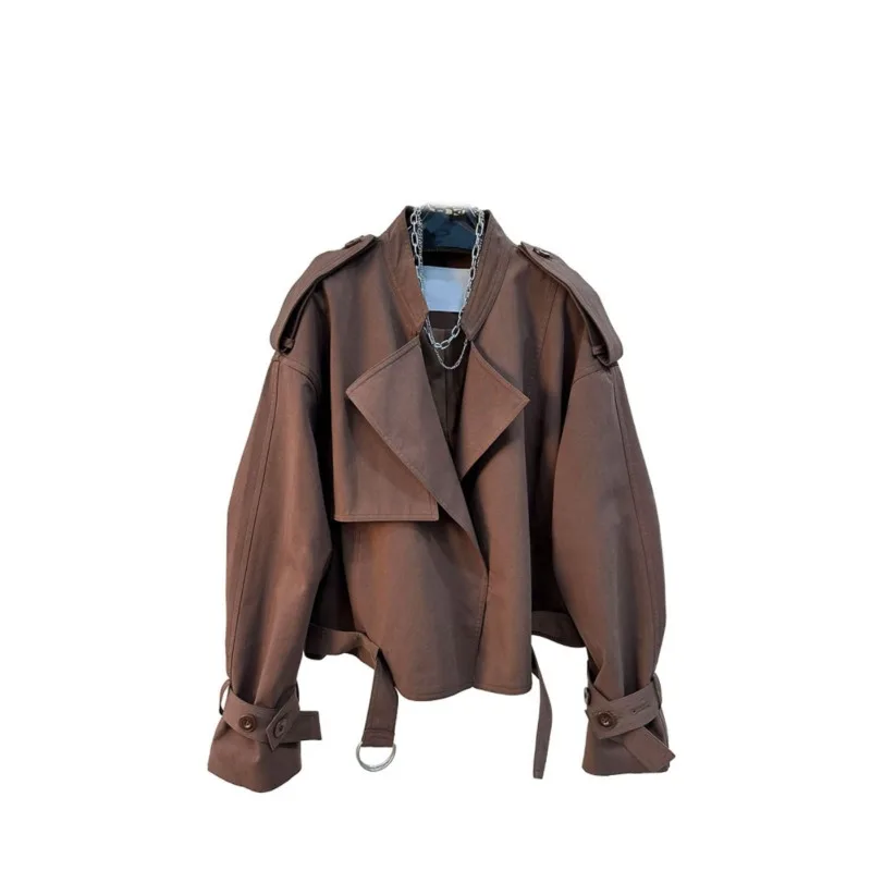 Workwear Short Style Little Fellow Loose Coat Female 2024 Autumn and Winter New Style Fallow All-match Advanced Trench Coat