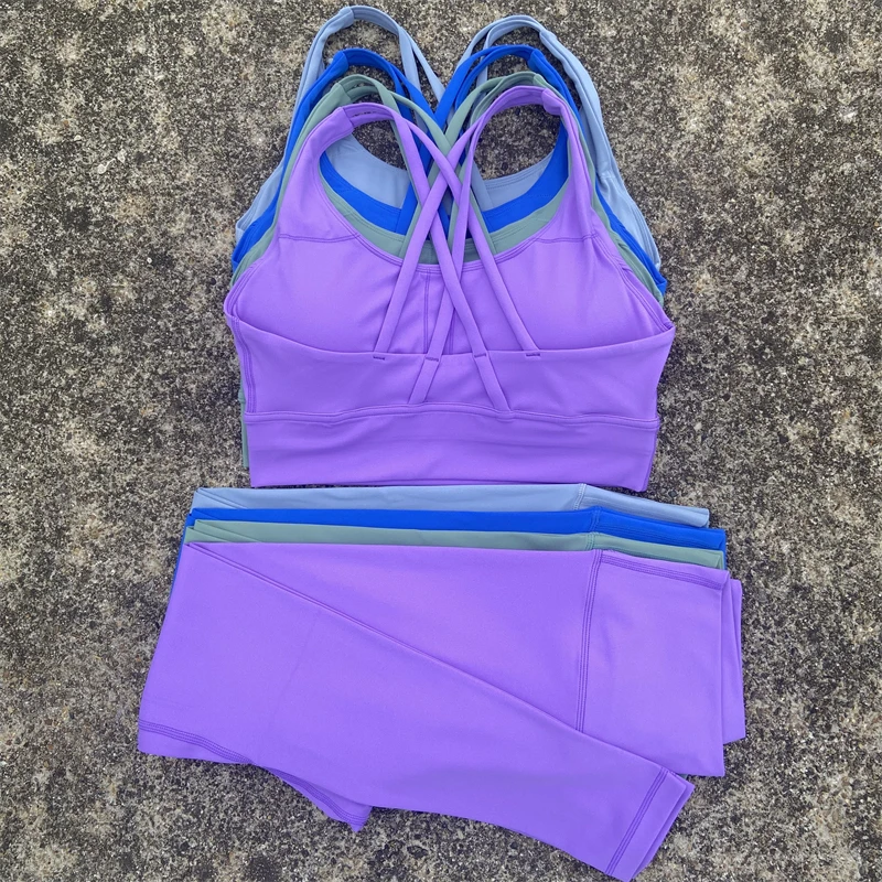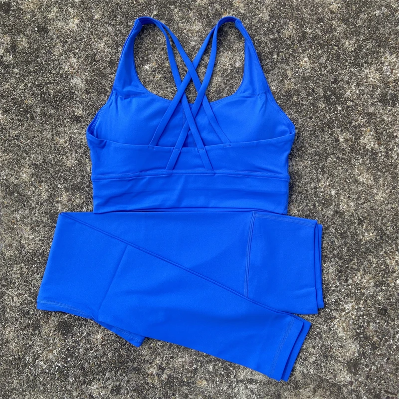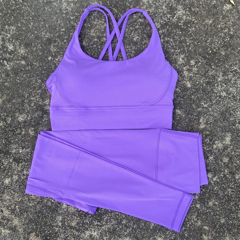 Yoga Set Gym Sports Set 2 Piece Women Workout Outfit Fitness Suit Cross Straps Bra Top And High Waist Leggings Running Tracksuit