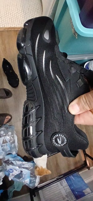 Delivery was super quick on these steel toecap trainers, they are a perfect size, i ordered a 45, 10. 5 in uk size and they just right, they are very comfortable and don’t feel like many other steely work trainers can be, the sole feels soft and grumpy, time will tell on how long they last but they feel sturdy and seem very well made, the twisty lace up bit seems good, if does happen to fail, normal laces can be used as there are loops to take them.