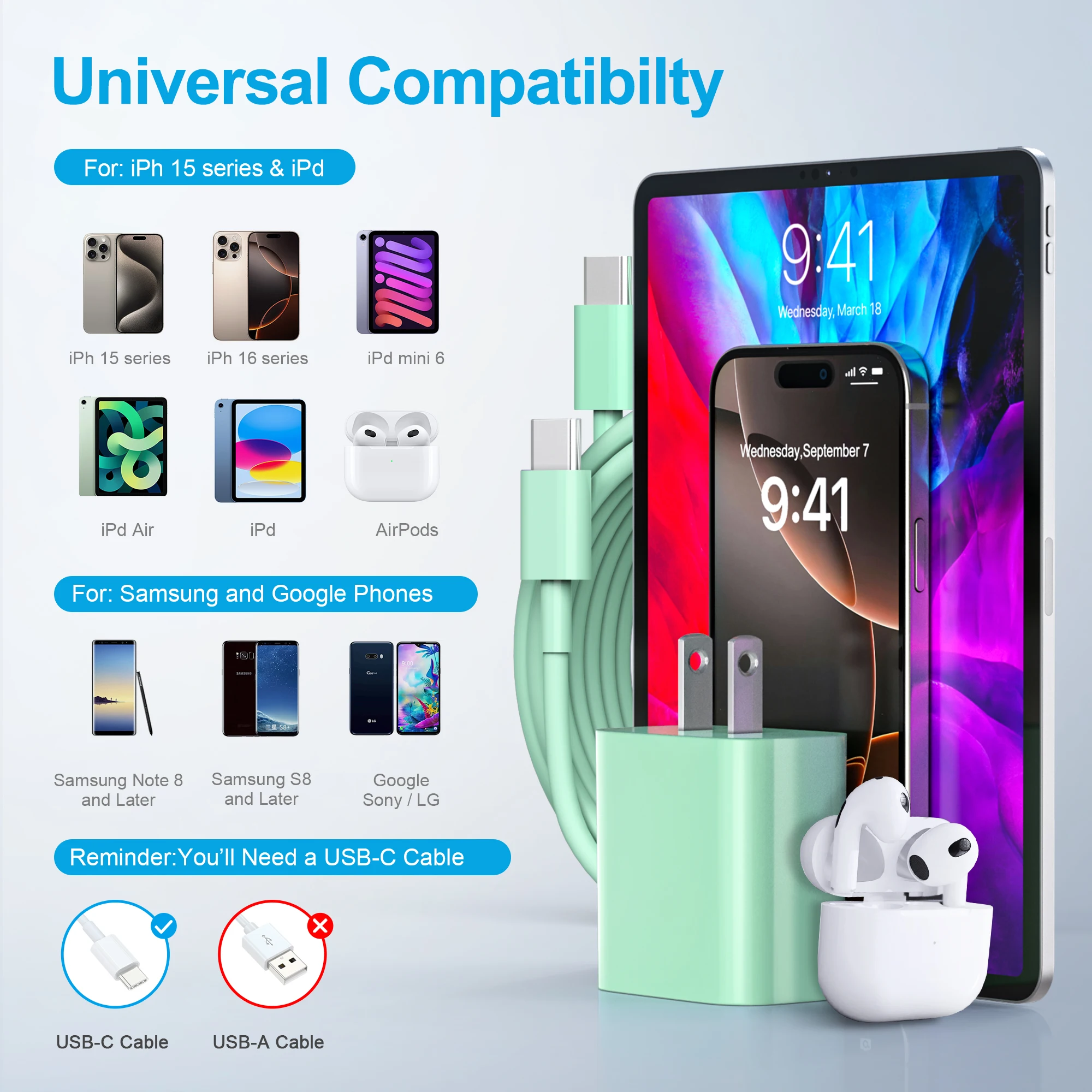 Suitable for iPhone 16 15 fast charging USB C charger C-type charger fast charging [2-piece set] Suitable for iPhone 16/16 Plus/